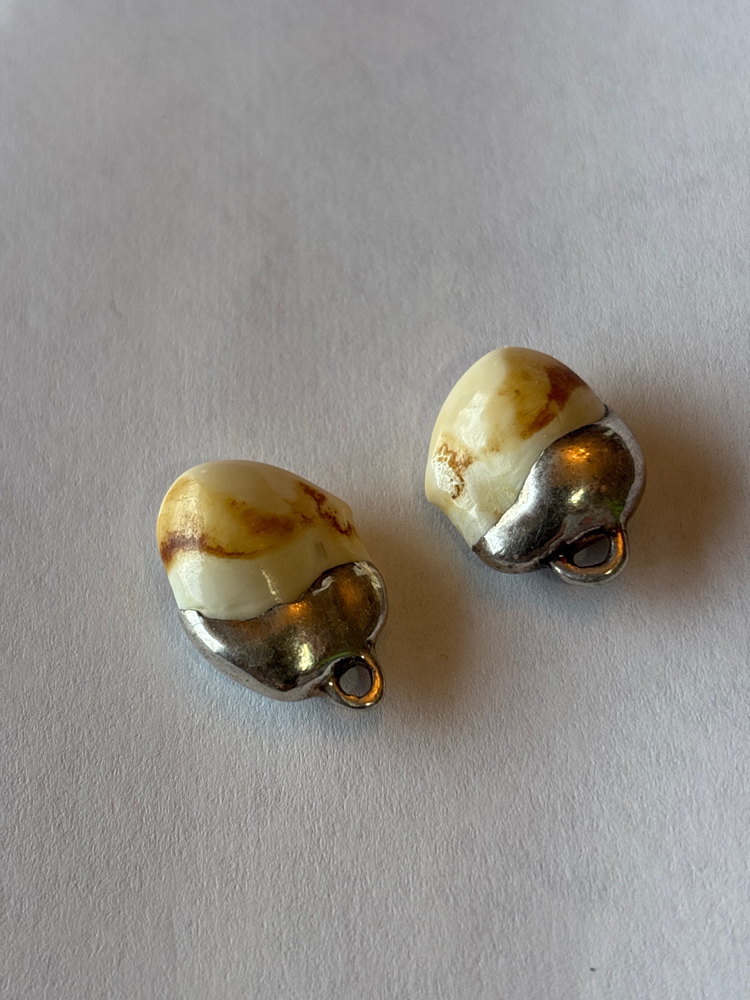 Pair of Silver-Mounted Grandel (Elk Ivory) Pendants