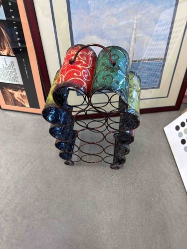 Multi-Colored Scrolled Metal Ten-Bottle Wine Rack