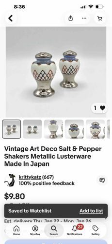 Vintage Art Deco Lusterware Salt and Pepper Shakers