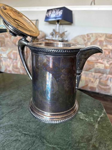 Antique Tarnish-Patinated Silverplate Lidded Pitcher