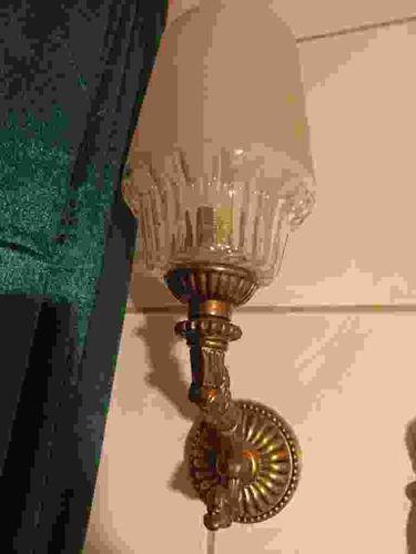 Vintage Neoclassical Style Brass Sconce with Frosted Glass Chimney