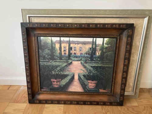 Italianate Garden Villa Landscape Painting in Ornate Tuscan Frame