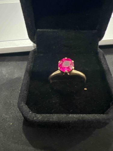 14k Yellow Gold Solitaire Ring with 1ct Round Pinkish-Red Stone