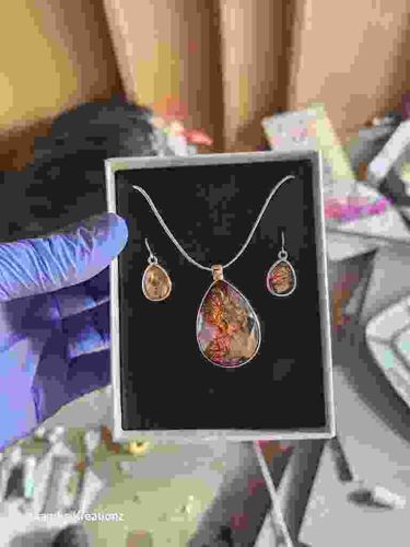Teardrop Resin Jewelry Set with Natural Inclusions