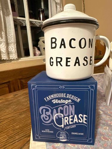 Vintage-Style Farmhouse Enamelware Bacon Grease Container