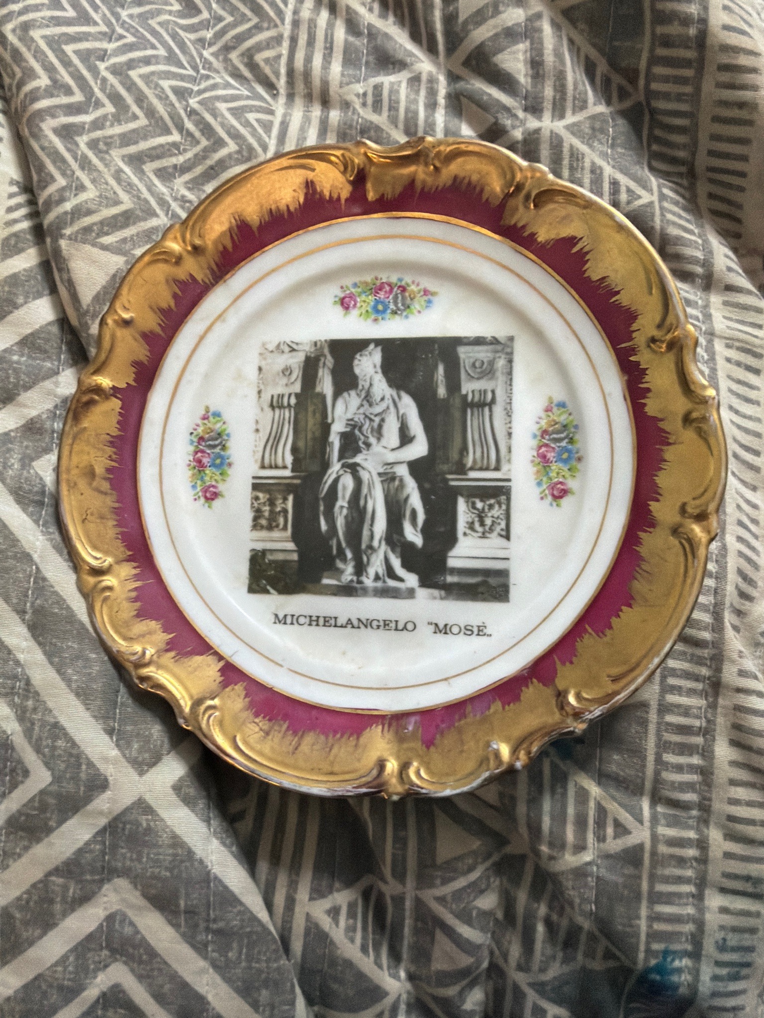 Souvenir Porcelain Plate Featuring Michelangelo's Moses