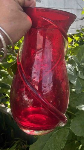 Mid-Century Ruby Red Blown Glass Vase with Spiral Wrap Trail