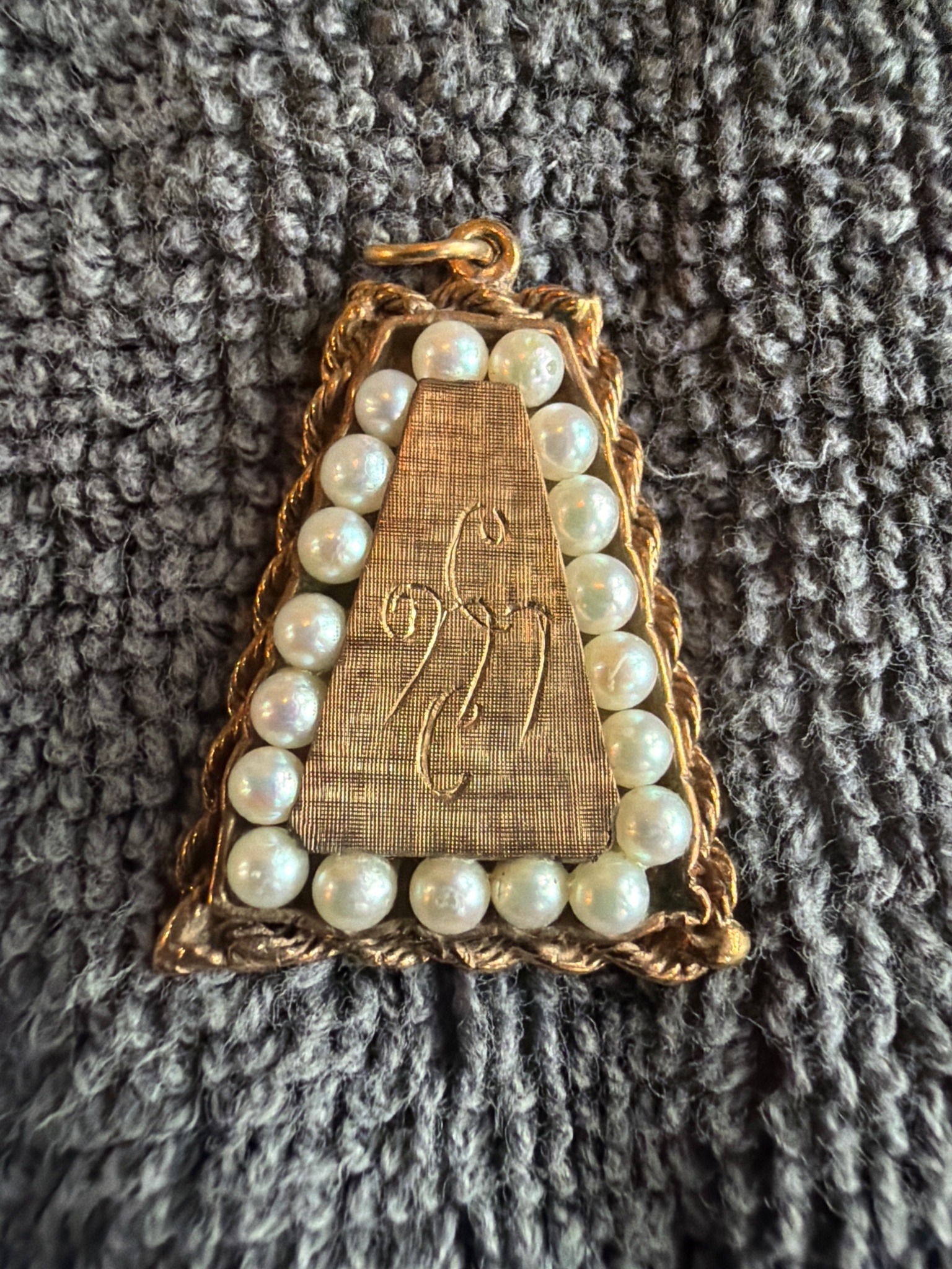 Vintage Gold and Pearl Monogrammed Trapezoidal Pendant