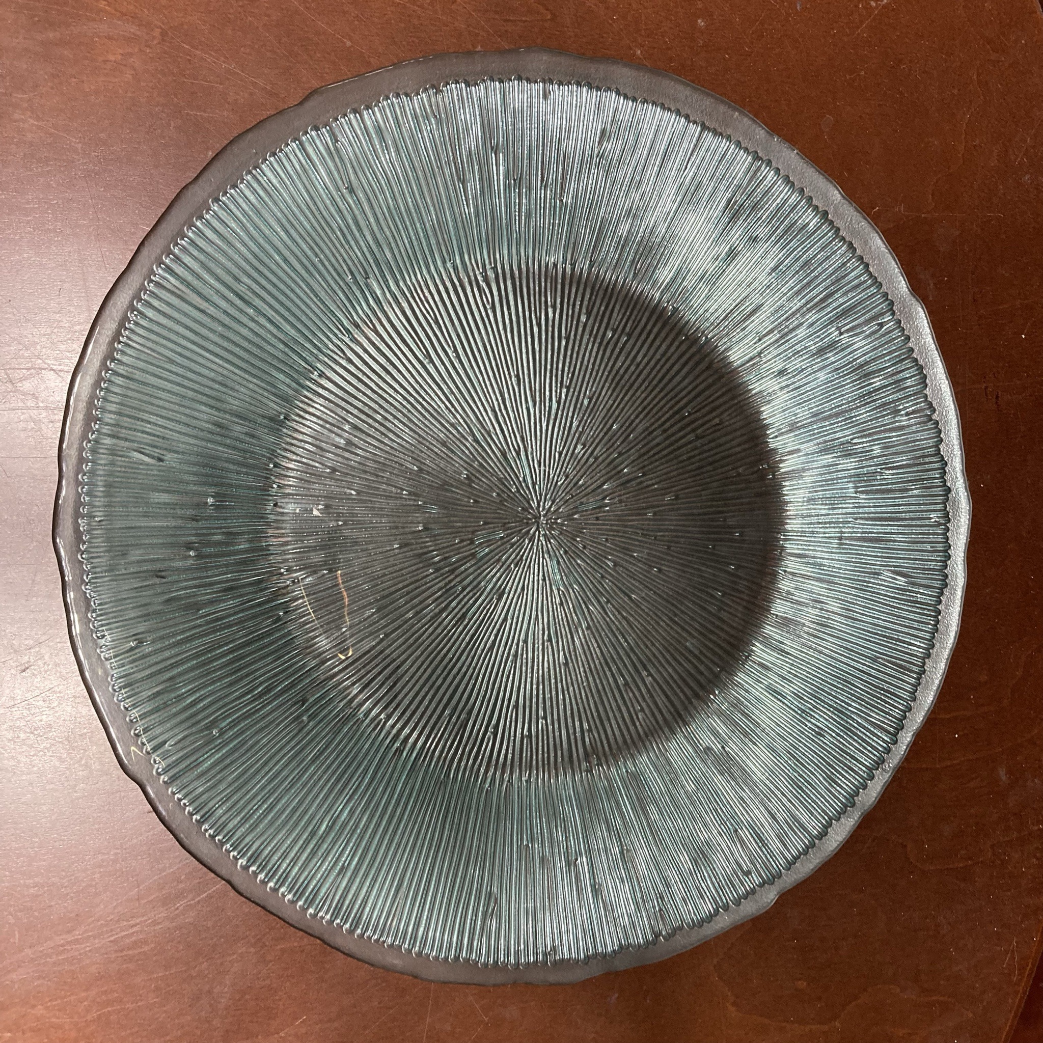 Set of Five Blue-Grey Radial Textured Glass Service Plates