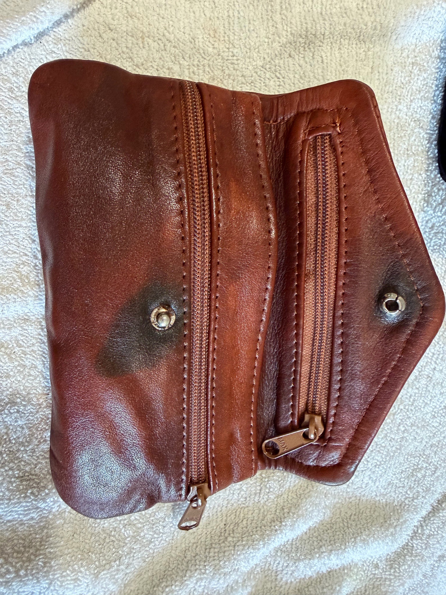 Vintage Mexican Brown Leather Multi-Zip Continental Wallet