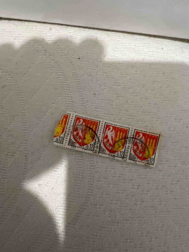 Strip of 0.12 Franc French Heraldry Postage Stamps (Blason d'Agen)