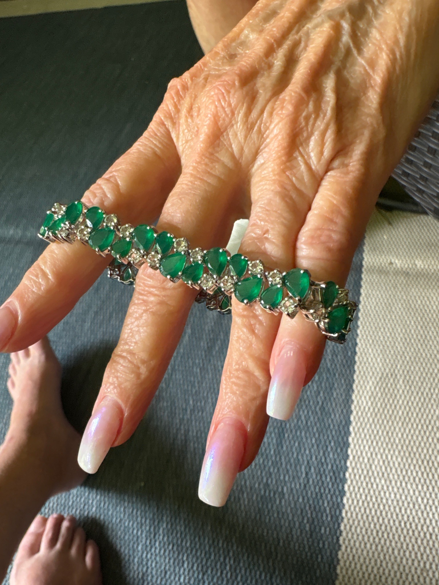 Pear-Cut Emerald and Diamond Line Bracelet