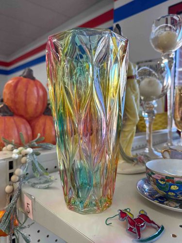 Iridescent Faceted Art Glass Vase