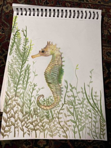 Seahorse Illustration in Spiral-Bound Sketchbook