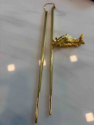 Gold-Tone Connected Chopsticks with Koi Fish Rest