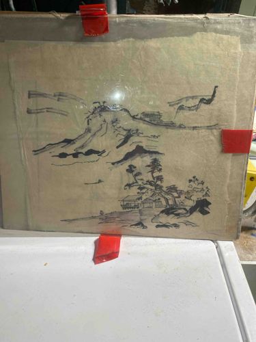 Japanese Sumi-e Ink Wash Landscape on Washi Paper