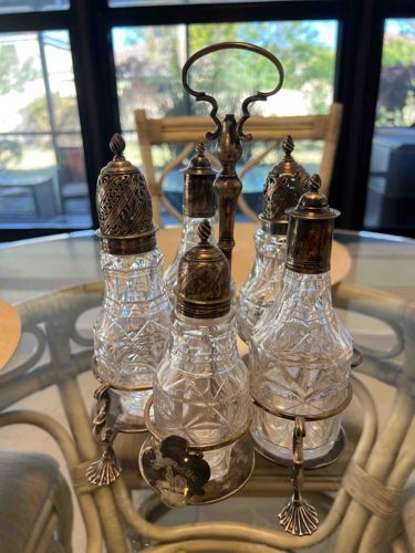 Victorian Era Silver-Plate and Cut Glass Cruet Set