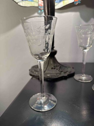 Vintage Etched Laurel Leaf Pattern Cordial Stemware