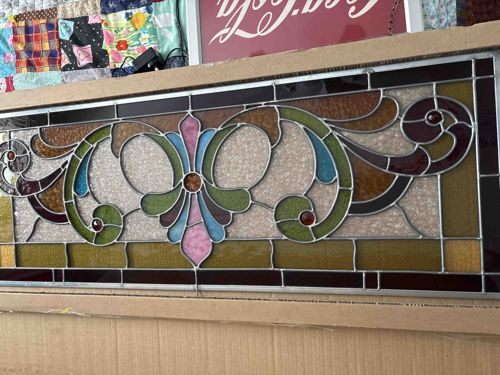 Art Nouveau Style Leaded Stained Glass Transom Window