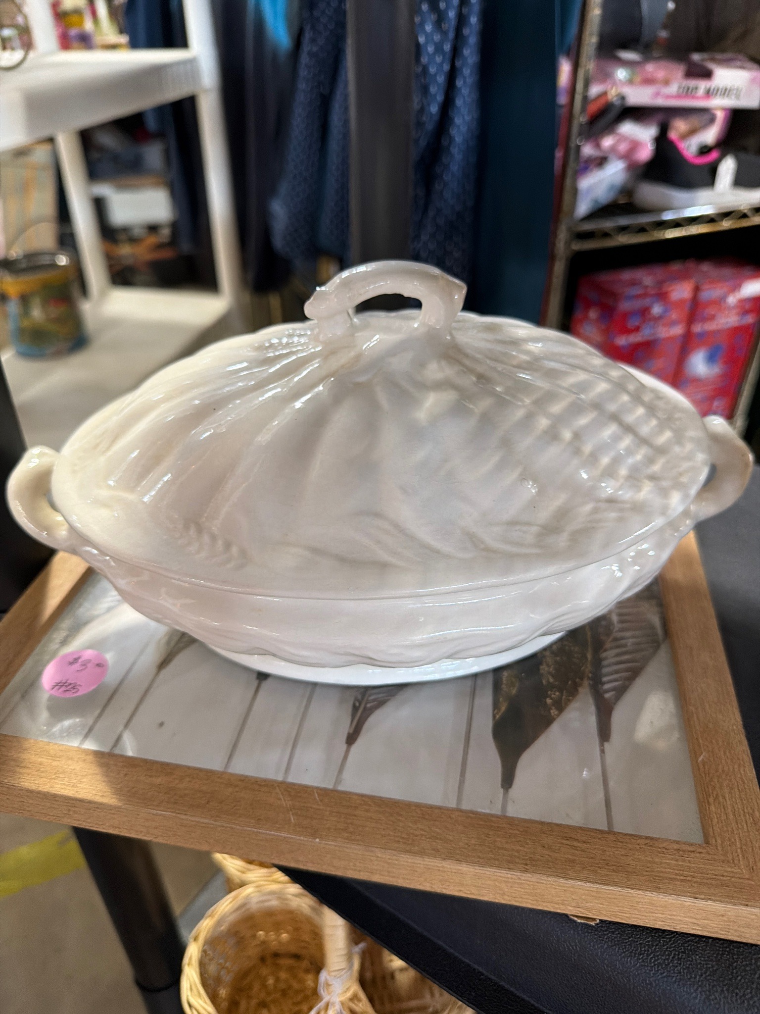 Vintage White Ironstone Covered Tureen with Shell Motif