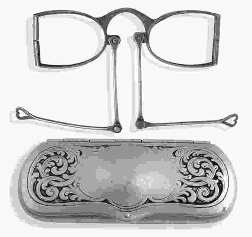 Late 18th to Early 19th Century Folding Silver Spectacles with Engraved Presentation Case