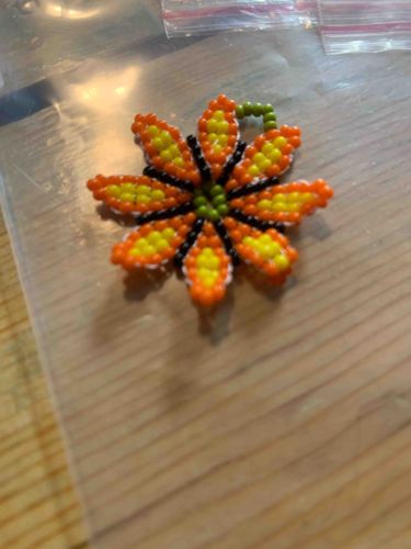 Hand-Woven Huichol-Style Seed Bead Flower Pendant