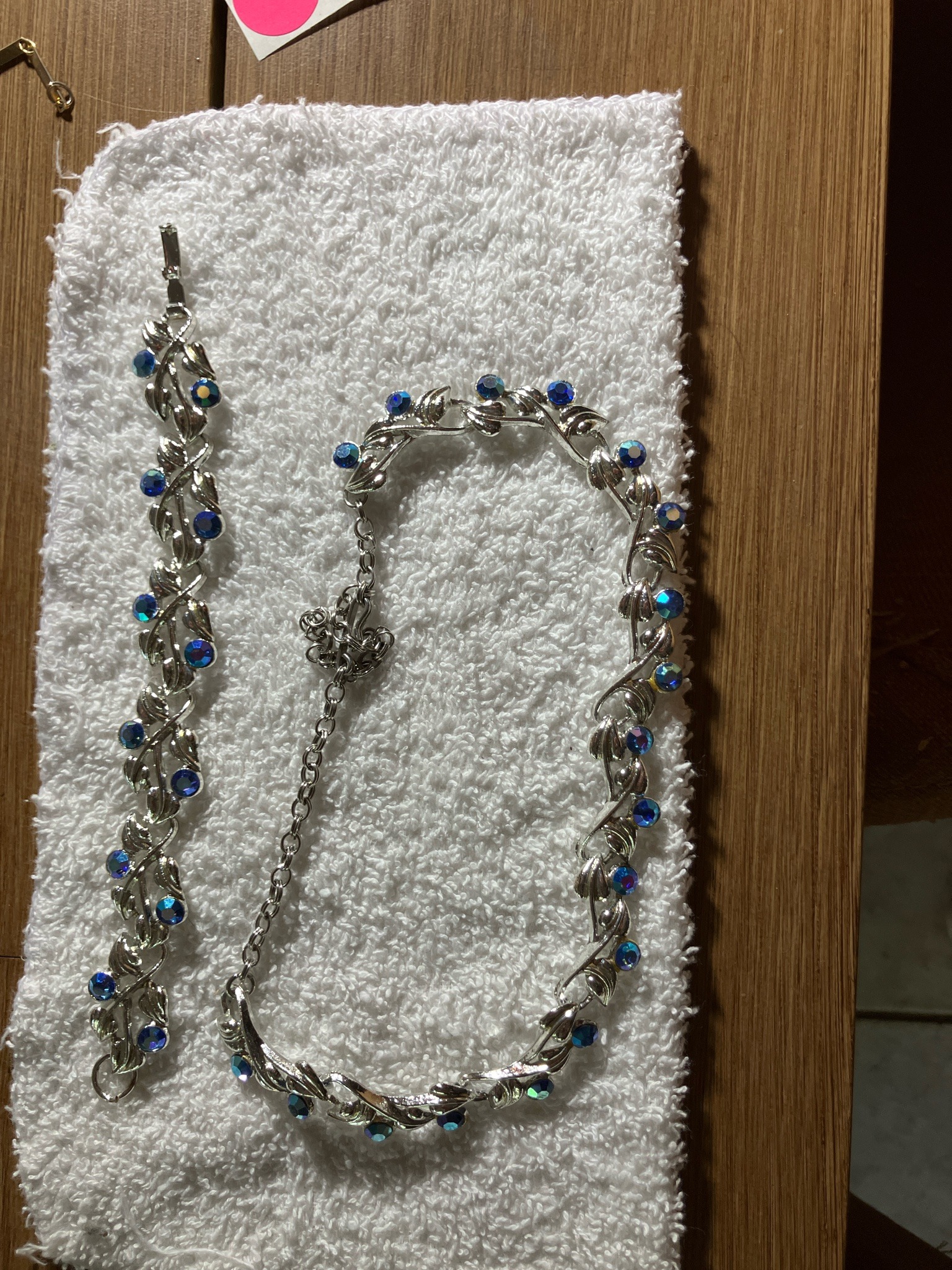 Vintage Trifari Blue Aurora Borealis Leaf Motif Costume Jewelry Set