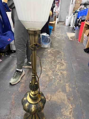 Mid-Century Hollywood Regency Brass and Milk Glass Floor Lamp