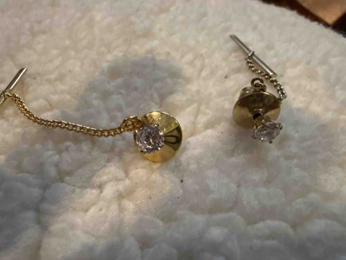 Gold and Diamond Tie Tacks with Safety Chains