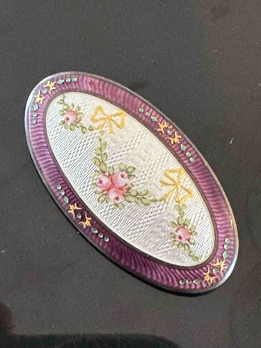 Vintage Guilloché Enamel Sterling Silver Oval Brooch