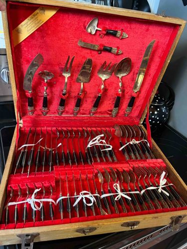 Vintage Bronze and Rosewood Thai Flatware Service for 12
