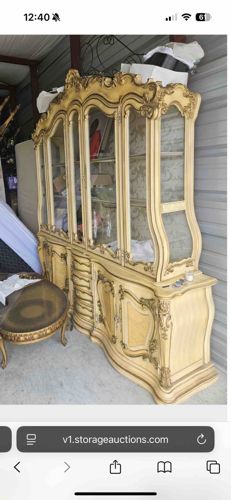 French Provincial Style Ornately Carved China Cabinet and Buffet