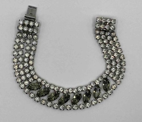 Vintage Joseph Weisner Rhinestone Smoky Quartz Navette Multi-Strand Bracelet