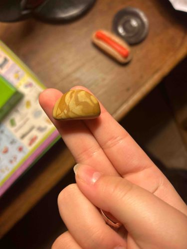 This item is a novelty puzzle eraser designed in the shape of a miniature taco. It is approximately one inch in length and is composed of multiple soft, rubbery synthetic pieces that allow it to be disassembled and reassembled. The construction features a tan-colored outer shell representing a hard taco shell, which is decorated with darker brown marbling to mimic a toasted or fried texture. Within the shell, visible layers represent food toppings including a darker brown section for meat and lighter tan sections for cheese or lettuce. The item exhibits a semi-matte finish typical of modern polymer stationery items. Condition appears good with no significant signs of wear or dry-rotting, though there is minor surface dust visible. It lacks any visible maker's marks or stamps, suggesting it is a mass-produced consumer product rather than a handmade miniature. These items became highly popular in the early 21st century, often as part of 'Iwako' style collections, known for their detailed craftsmanship in mimicking real-world objects at a diminutive scale.