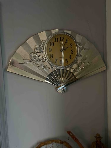 Vintage Silver-Tone Fan-Shaped Quartz Wall Clock