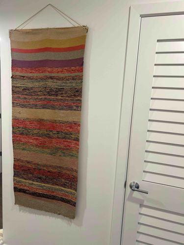 Hand-Woven Striped Rag Rug / Textile Wall Hanging