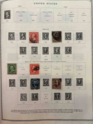 Vintage United States Postage Stamp Album Page (1887-1894)