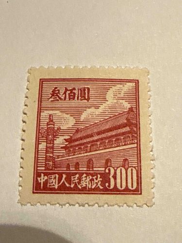 1950 People's Republic of China Gate of Heavenly Peace Stamp - 300 Yuan Red