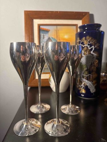 Set of Four Mid-Century Modern Silver-Plated Cordial or Wine Goblets