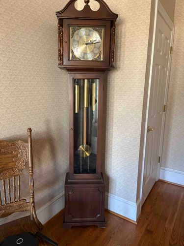 Grandfather clock since the early 70s. Labeled antique reproductions.