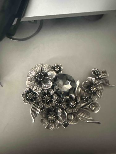 Vintage-Style Antiqued Silver Rhinestone Floral Brooch