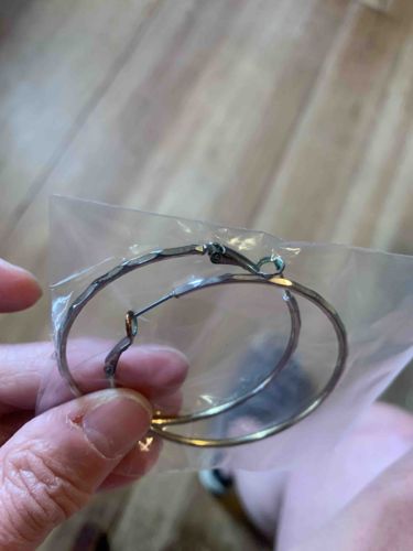 A pair of medium-to-large sized hoop earrings, approximately 40-50mm in diameter, constructed from a silver-toned metal, likely stainless steel or silver-plated alloy. The earrings feature a distinct hammered or faceted texture on the outer surface of the tubular wire, which creates multiple reflective surfaces for light. The closure mechanism is a standard saddle back or hinged latch post (also known as a French lock), common in contemporary fashion jewelry. Physically, the item appears to be in new or like-new condition, currently contained within a clear plastic adhesive-seal polybag, which has protected the finish from significant oxidation or scratching. There are no visible maker's marks or hallmarks on the posts or the bodies of the hoops, suggesting they are mass-produced fashion accessories rather than fine artisan jewelry. The craftsmanship is utilitarian with clean hinge joints and a uniform silver color across the surface. These earrings represent a classic, versatile style popular from the late 20th century to the present day, emphasizing a minimalist yet textured aesthetic suitable for daily wear.