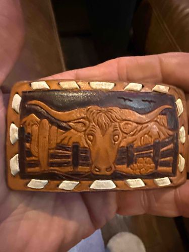 Vintage Tooled Leather Longhorn Steer Belt Buckle