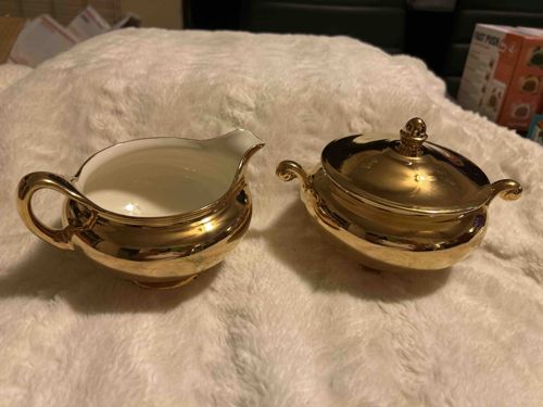George H. Bowman & Son 22K Gold Encrusted Creamer and Covered Sugar Bowl Set