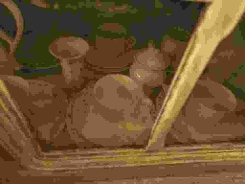 This is a comprehensive vintage ceramic service set, likely crafted from stoneware or heavy porcelain. The collection includes a variety of functional pieces: multiple rounded teacups with small loop handles, matching saucers with raised rims, a lidded sugar bowl, a small creamer pitcher, and a taller coffee or teapot. The set features a warm, earthy monochromatic glaze in a muted gold or ochre tone, suggesting a Mid-Century Modern or late 20th-century artisanal influence. The construction appears sturdy with thick walls and visible throwing rings or subtle variations in the glaze, indicating a handmade or high-quality small-batch production. The finish has a soft, satin-to-gloss sheen that highlights the organic curves of the vessels. In terms of condition, the pieces show evidence of use and age, with fine surface crazing and minor darkening of the glaze in recessed areas, which adds a desirable patina. There are no large chips or structural cracks visible in the current configuration, suggesting the set has been well-maintained. The style is reminiscent of Scandinavian or Japanese minimalist pottery, focusing on form and texture rather than ornate decoration. The lack of visible external branding suggests maker's marks or stamps would likely be located on the unglazed foot rings of the individual pieces.