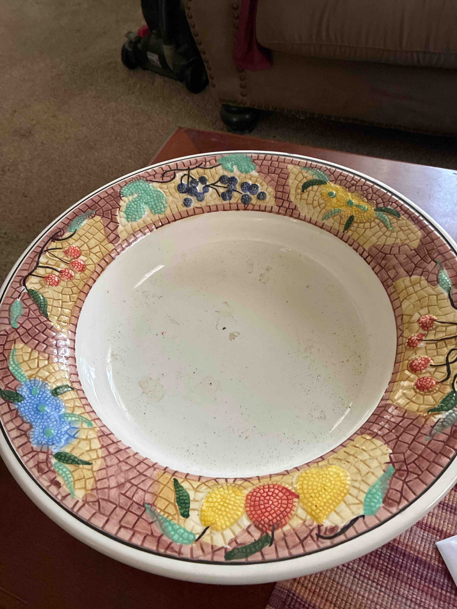 Italian Majolica Mosaic Style Fruit Motif Ceramic Bowl
