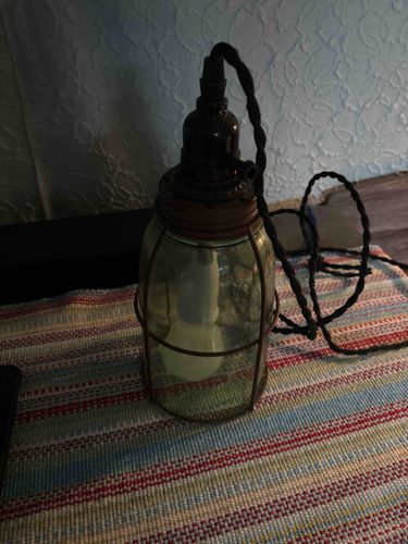 Vintage Mason Jar Pendant Lamp with Wire Cage