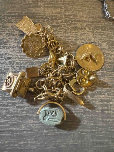 Vintage Gold Charm Bracelet with Various Sentimental Pendants