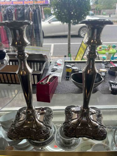 Pair of Repoussé Silver-Plated or Sterling Silver Candlesticks