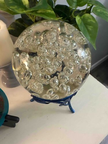 Controlled Bubble Glass Paperweight Ball with Metal Stand